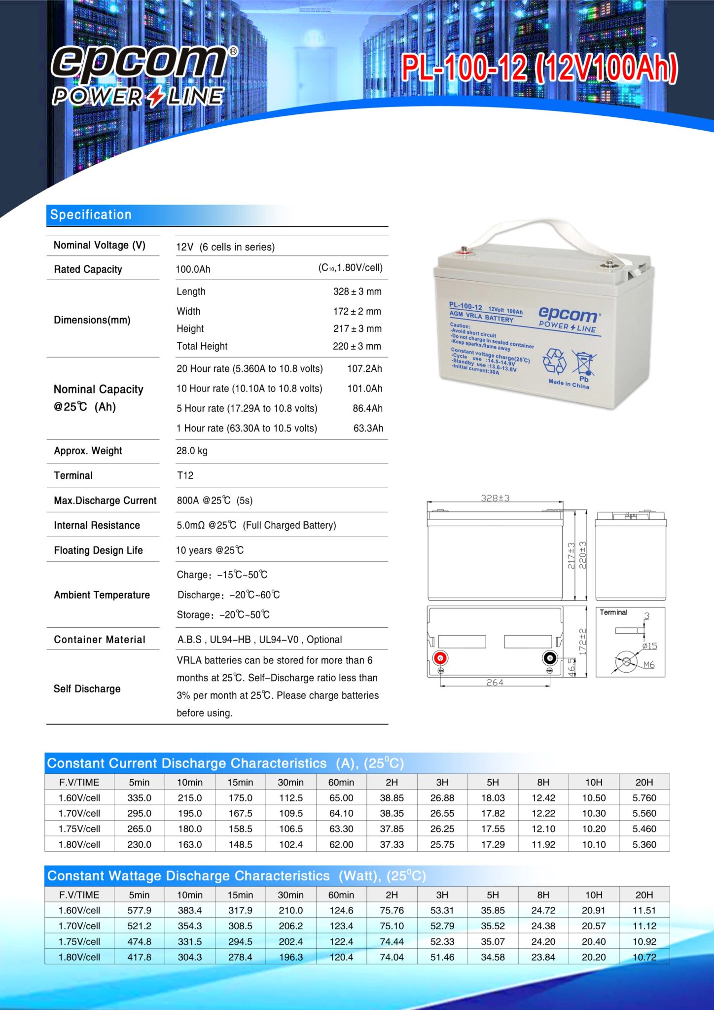 2 x PL-100-12 Baterías tecnología AGM VRLA de 100 Ah 12 Vcd EPCOM.