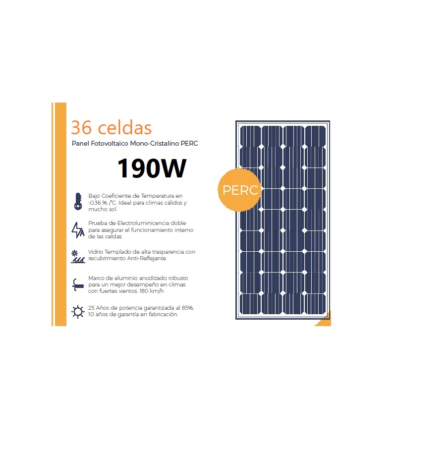 Panel Solar 190W Mono-Cristalino PERC – 36 Celdas